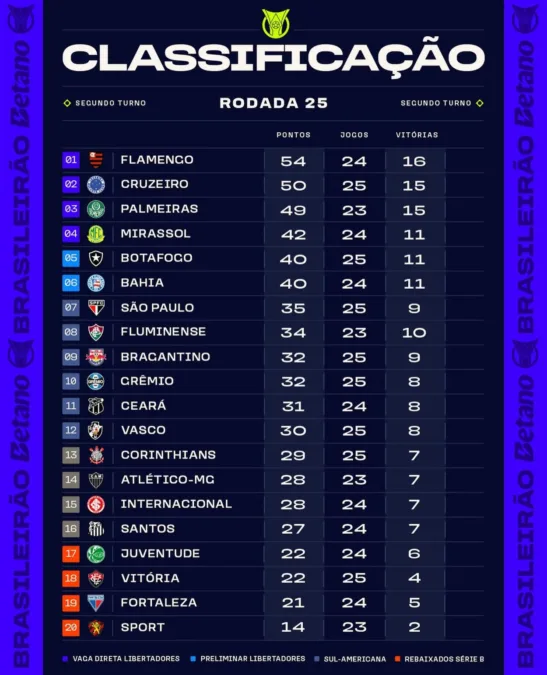 O Inter, por sua vez, não saiu de um empate em 1×1 diante do Juventude, fora de casa, na estreia da comissão técnica liderada por Ramón Díaz. O Colorado até saiu na frente no primeiro tempo em gol de Alan Patrick, mas teve queda acentuada na etapa final e levou o empate, ficando no 15° lugar com 28 pontos, seis a mais que o Z4.
