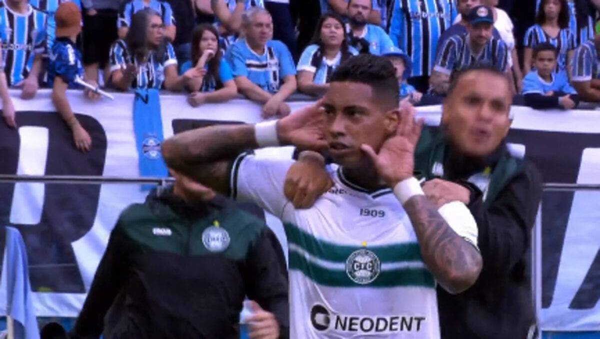 Após sair atrás no placar na partida diante do Grêmio, na Arena, o Coritiba mostrou poder de reação no primeiro tempo do jogo do Brasileirão neste domingo e chegou ao 1×1 com gol marcado por Alef Manga. De fora da área, o atacante bateu com estilo, em curva, vencendo o goleiro Gabriel Grando – antes, Grando já havia feito três defesas importantes.