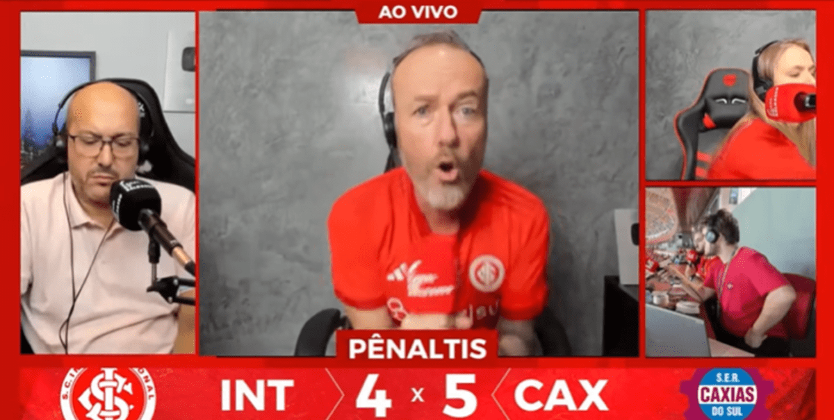Como já era de se imaginar, o jornalista colorado Fabiano Baldasso se irritou após a eliminação do Inter nos pênaltis para o Caxias, no Beira-Rio, neste domingo, pela volta da semifinal do Gauchão. O comunicador atacou principalmente o presidente Alessandro Barcellos e também o jovem meia Estêvão, que perdeu um gol decisivo no fim do tempo normal e depois ainda errou a sua penalidade máxima.