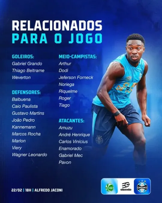 Os relacionados do Grêmio para o jogo de domingo: