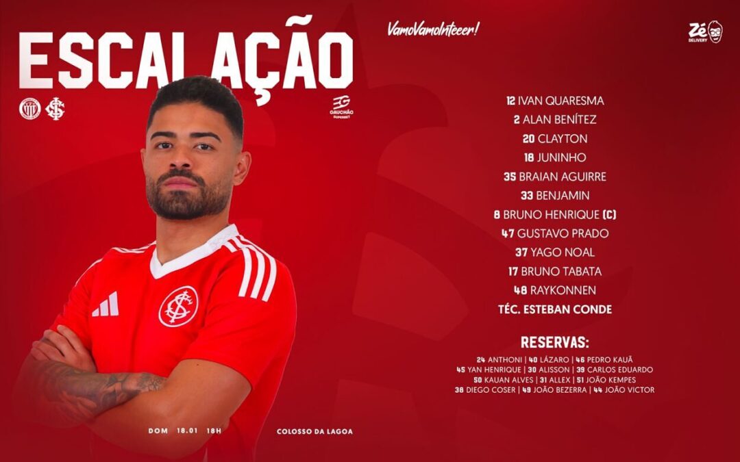 Treinado pelo auxiliar Esteban Conde, já que o treinador Paulo Pezzolano permaneceu em Porto Alegre para treinar os titulares, o Inter está oficialmente escalado no papel para encarar o Ypiranga, em Erechim, a partir das 18h, pela terceira rodada do Gauchão. Alguns nomes experientes como Ivan, Alan Benítez, Juninho, Aguirre, Bruno Tabata e Bruno Henrique estão escalados.
