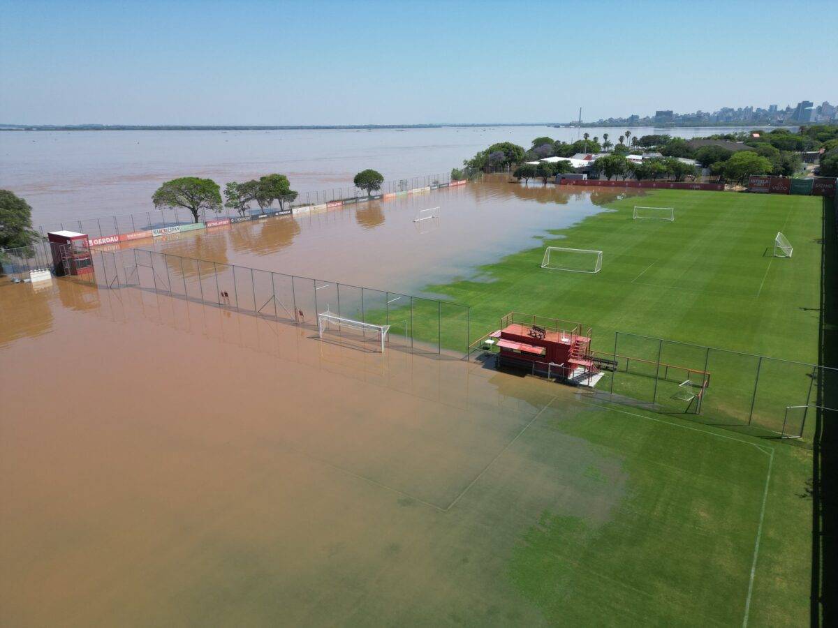 O Inter precisou mudar de última hora o planejamento do treino desta terça-feira e passou a atividade para o Estádio Beira-Rio, já que o CT Parque Gigante ficou alagado por conta das enchentes do Rio Grande do Sul. O clube até mesmo divulgou imagens do avanço das águas do Guaíba, que inundaram campos de treinamento e estacionamento do local.