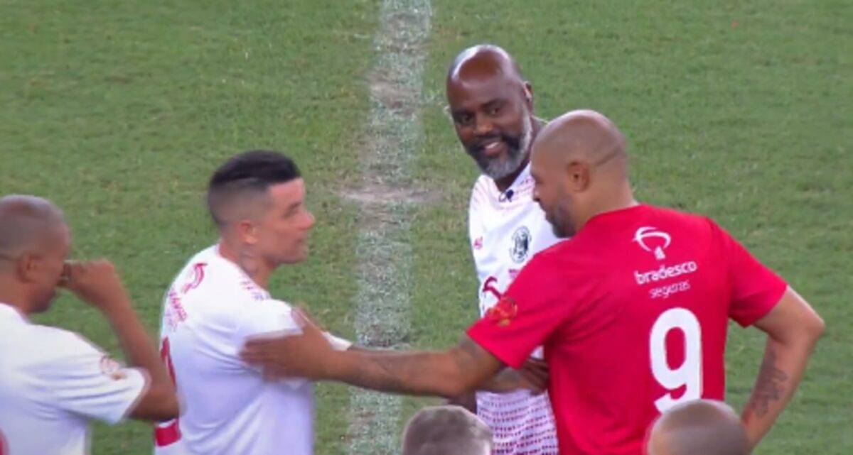 Em outro momento, D’Alessandro se aproximou do ex-centroavante Adriano, que era do time oposto, para “reclamar” da perda do título da Copa América de 2004. Com o ex-Inter em campo, os hermanos venciam até o fim quando Imperador empatou a partida. Depois, o Brasil ficou com a taça nos pênaltis.