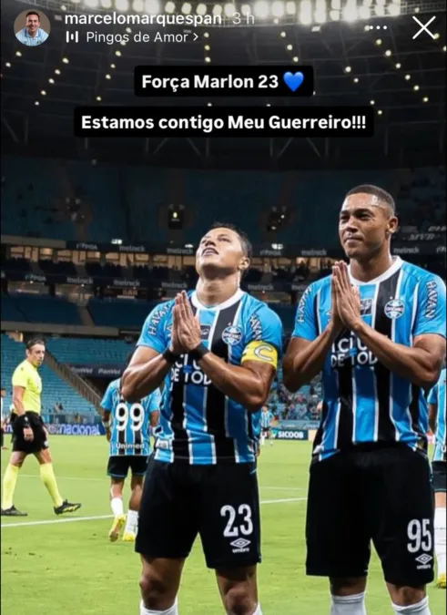 Um dos autores dessas mensagens de apoio foi o empresário, investidor e torcedor gremista Marcelo Marques, responsável por comprar a Arena e doar ao clube em 2025. “Força Marlon. Estamos contigo, meu guerreiro”, publicou Marques nas suas redes sociais.