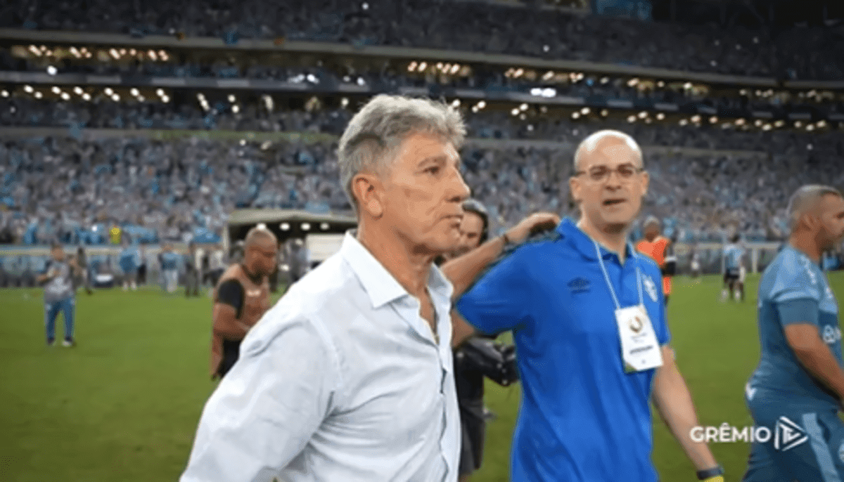Postura de jornalistas que deram “presentes” para Renato em coletiva gera debate nas redes sociaisAssim como Adriel e Vina, Diego Souza também brinca com o Inter após título do Grêmio: “Não tem chance nunca”O final de semana foi repleto de emoção. Dentro e fora do campo. Estamos juntos Renato! 👊🏻🇪🇪🏆 pic.twitter.com/IhEZedkKpB