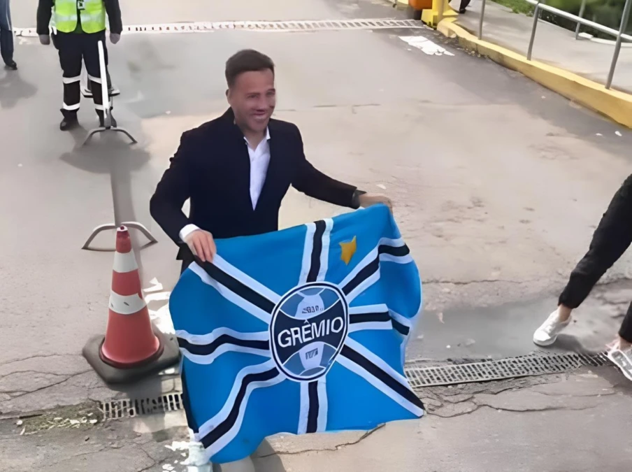 Arthur esteve acompanhado de seguranças e membros do staff do Grêmio. No principal momento da sua chegada, ele segurou uma bandeira gremista e distribuiu sorrisos para os torcedores eufóricos com a contratação.