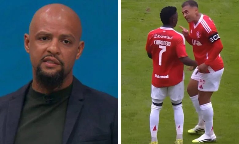 Durante o programa “Fechamento SporTV” neste domingo ao lado de colegas como Denilson e Eric Faria, entre outros, o ex-volante e atual comentarista Felipe Melo chamou a atenção para um lance específico de Inter 1×0 Ceará pelo Brasileirão no Beira-Rio. Foi quando o meia Alan Patrick exerceu sua liderança para cobrar o colega Carbonero por uma falta cometida.