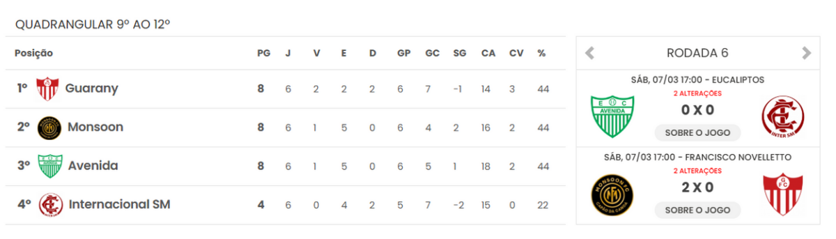 Portanto, Avenida e Inter de Santa Maria disputarão a Divisão de Acesso do Gauchão em 2027. No decorrer da atual temporada, serão conhecidos os dois times que vão subir através da segundona. Veja como ficou a tabela deste quadrangular: