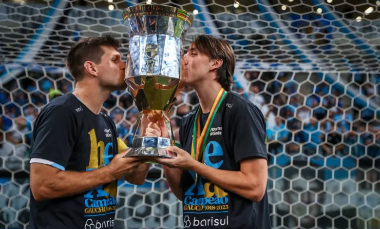 Como de costume a cada título do Grêmio, Geromel e Kannemann repetiram neste sábado, em frente à goleira da Arena, a tradicional foto em que ambos seguram e beijam a taça. Dessa vez, o troféu representa a conquista do Gauchão de 2023, que foi buscado através de uma vitória magra de 1×0 sobre o Caxias com gol de pênalti de Luis Suárez.