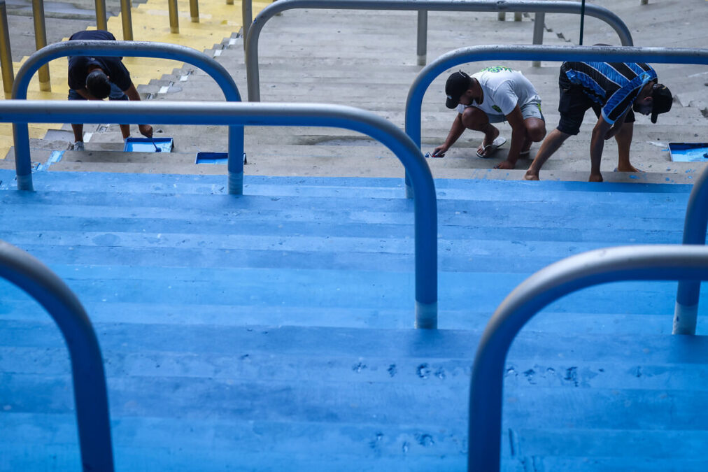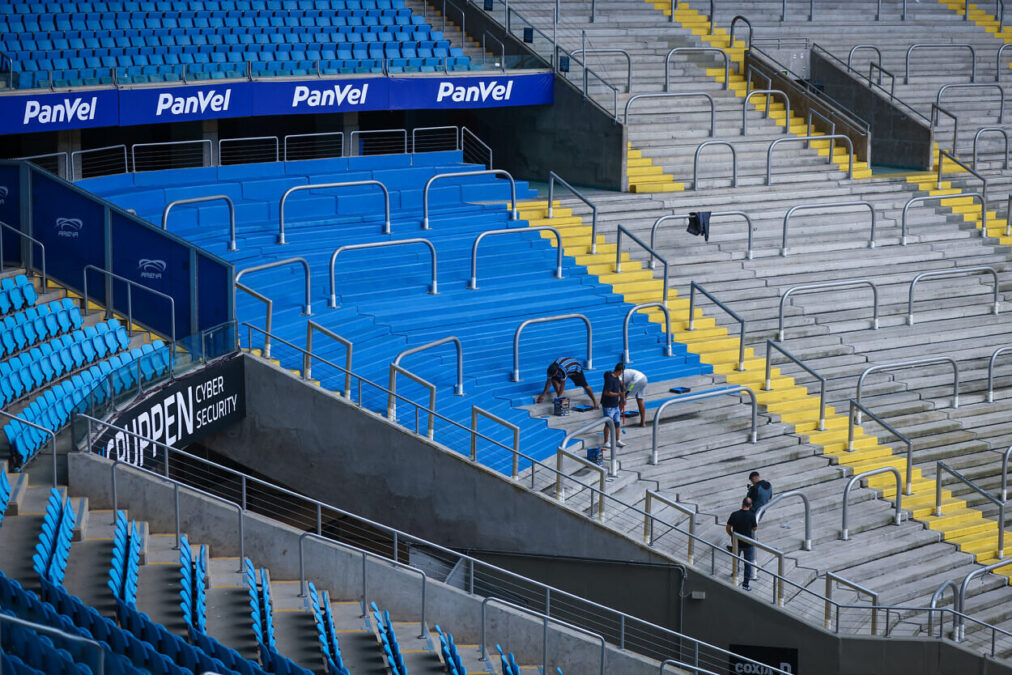 Aproveitando a parada dos jogos por conta da semana de Data FIFA, o Grêmio utiliza o tempo livre para intensificar a pintura do setor mais popular da Arena, a Arquibancada Norte, que está ganhando as cores do clube e já vai estar praticamente “nova” no próximo jogo. O projeto conta com a parceria comercial das Tintas Coral, patrocinadora do clube, que forneceu o material necessário para a ação.