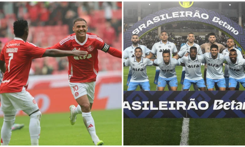 O término da rodada deste final de semana do Brasileirão registrou uma coincidência nas campanhas de Inter e Grêmio, que estão igualados em 17 pontos neste momento. O Colorado, no entanto, supera o rival no quesito saldo de gols e por isso está no 12° lugar, enquanto o time treinado por Mano Menezes vem logo atrás no 13° posto.