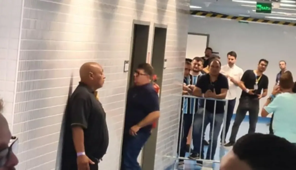 Equipe do VAR deixa a Arena sob protesto do Vice Presidente de Futebol Alexandre Rossato.