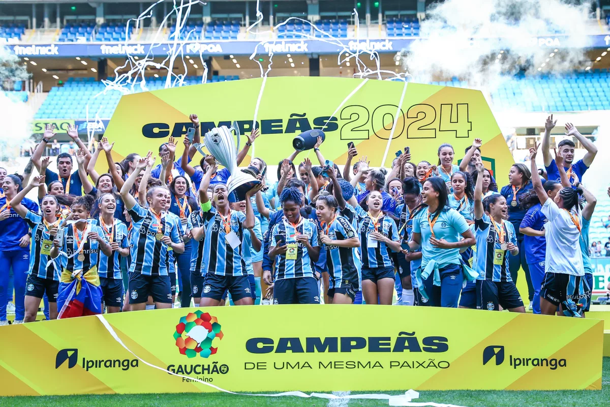 “Parabéns @GuriasGremistas! Assim se comemora Grenal… junto com a taça”, escreveu Caleffi, em uma clara alusão à comemoração do Inter depois do recente clássico pelo Brasileirão no Beira-Rio, que terminou com vitória de 1×0 com gol de Borré.