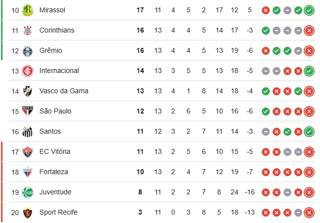 + Inter sofre com empate do Cruzeiro e vê Santos e Ceará ganharem “ajuda” na luta contra queda