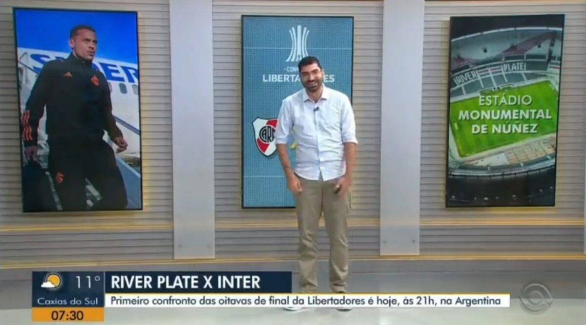 Ao colocar em pauta o jogo desta noite entre River Plate x Inter, no Monumental de Nuñez, pela ida das oitavas de final da Conmebol Libertadores, a RBSTV acabou cometendo uma gafe que desagradou bastante os torcedores colorados. Durante o programa Bom Dia Rio Grande, logo pela manhã, a emissora gaúcha trocou o emblema colorado pelo símbolo do rival Grêmio.