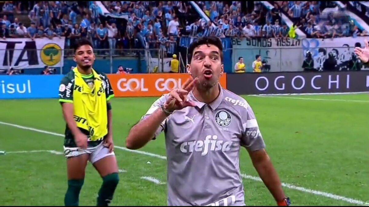 Ao sair de campo, Marçal procurou as câmeras e falou: ‘Isso aqui é roubo, isso sim que é roubo, Abel’. No dia anterior, o treinador do Palmeiras deixou o gramado da Arena do Grêmio antes do apito final fazendo gestos de “roubo” – reveja aqui.