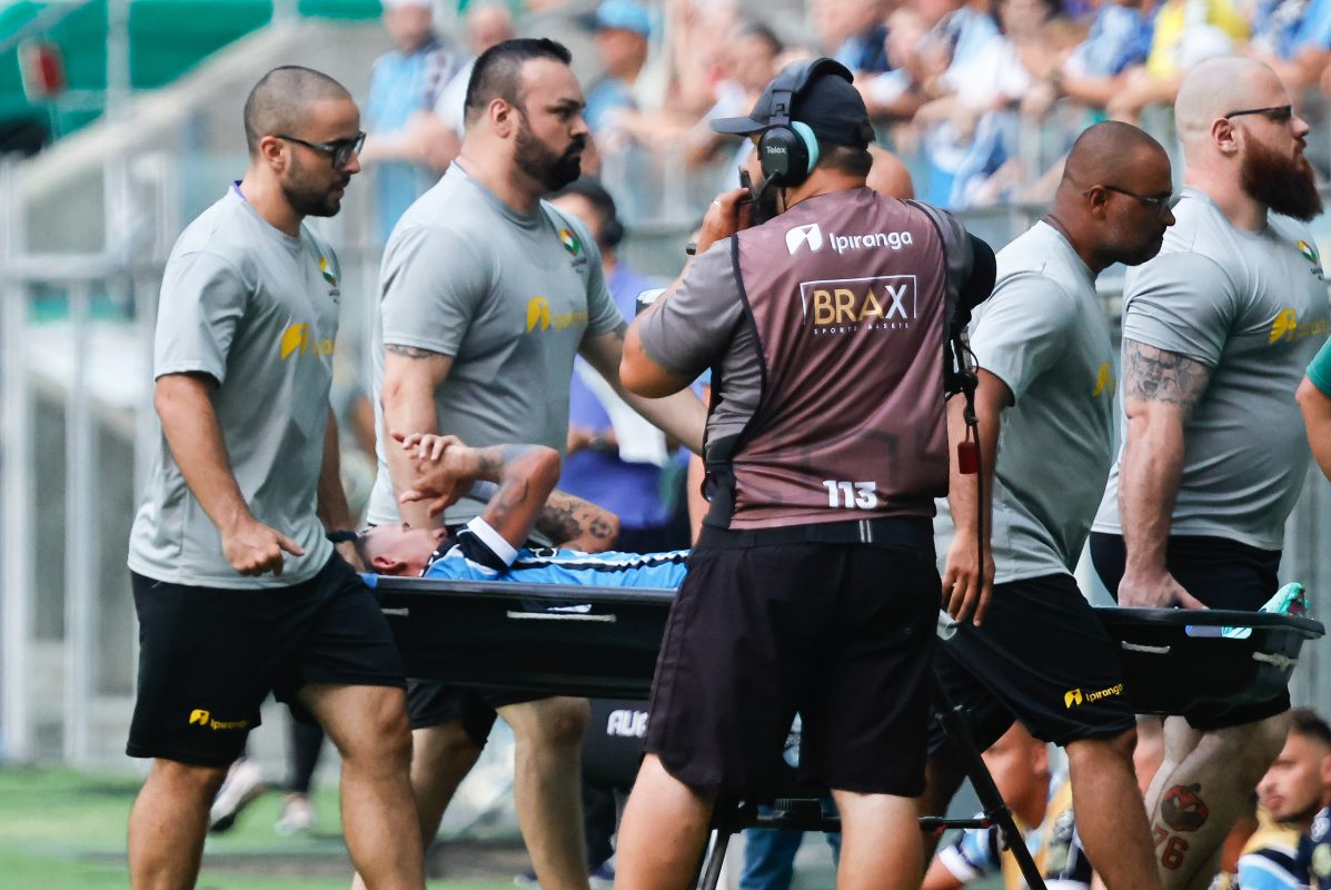 As informações preliminares sobre a nova lesão de Jhonata Robert, meia-atacante do Grêmio, não são boas. O jogador sentiu o mesmo joelho esquerdo operado duas vezes desde 2022 e precisou sair antes do intervalo do empate em 1×1 com o São Luiz, na Arena, neste sábado. Ele deixou o gramado de maca rumo ao vestiário e chorou bastante – veja aqui.