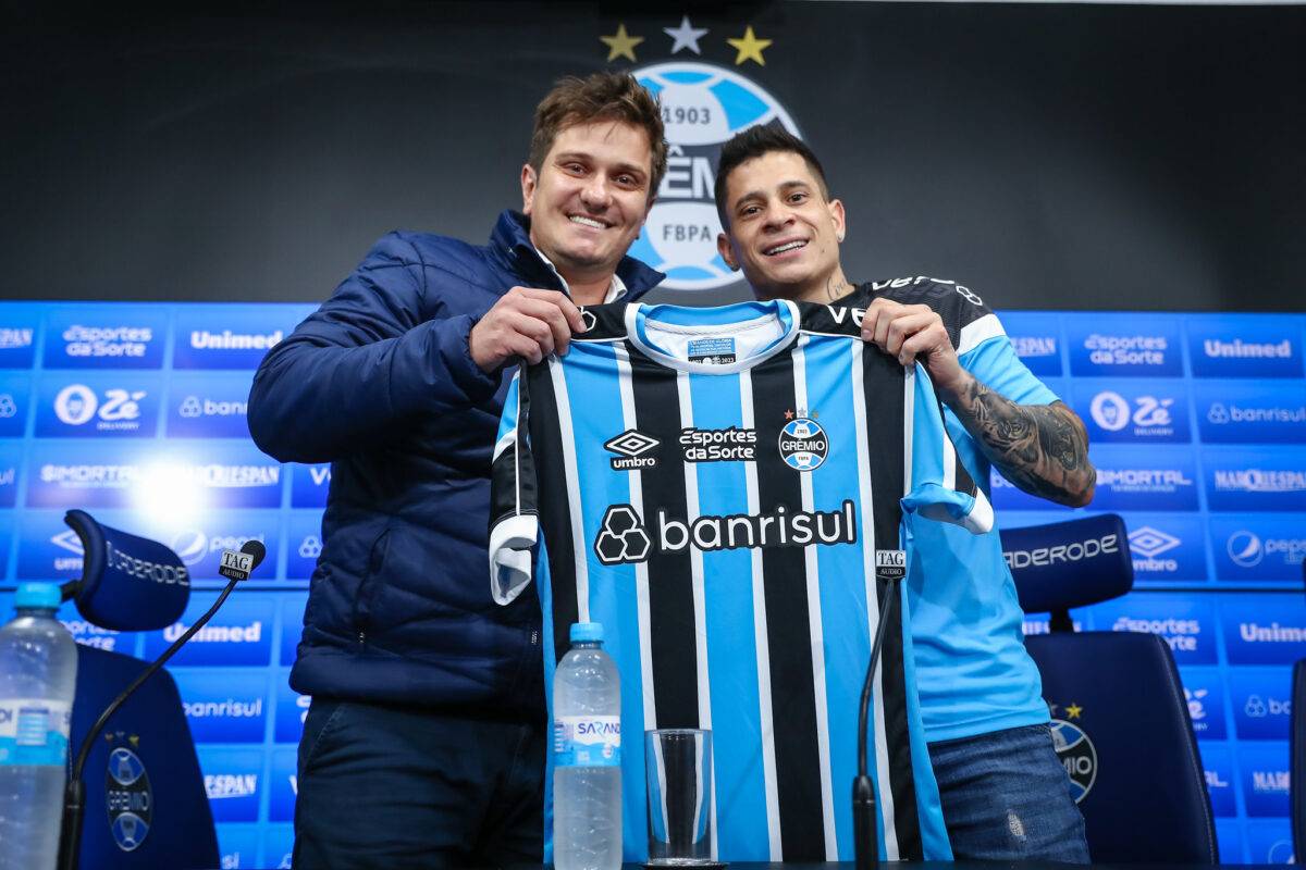 “Antes de vir para o Grêmio, falei com Lucas Barrios. Ele me falou muito bem do clube e me disse para não me preocupar com nada. Ele me falou muito bem de todos e isso me influenciou muito. Quero logo começar e demonstrar meu jogo”, disse Iturbe, antes de falar de Villasanti: