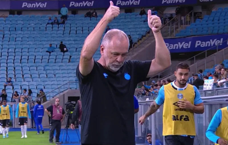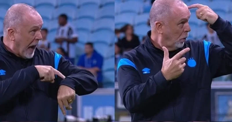 Sempre ativo na beira de campo a cada jogo, o técnico Mano Menezes teve reações diferentes no primeiro tempo de Grêmio x Bragantino na Arena, neste sábado, em mais uma rodada válida pelo turno inicial do Brasileirão. Logo por volta de 10 minutos, quando torcedores se manifestaram em uma jogada envolvendo Jemerson, o treinador se virou e apontou para a cabeça e para o pulso, dizendo: “Já?”.