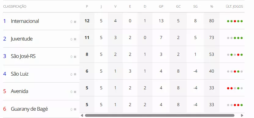 Ou seja, neste momento, o rival colorado em jogo único no Beira-Rio seria o São Luiz, atual 4° colocado do Grupo A com 6 pontos. Mas São José, Avenida e Guarany de Bagé ainda têm chances e podem fechar o sábado no 4° lugar.