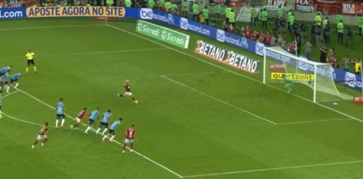Vídeo e áudio do VAR, no pênalti marcado para o Flamengo contra o Grêmio, na quarta-feira, pela Copa do Brasil:
