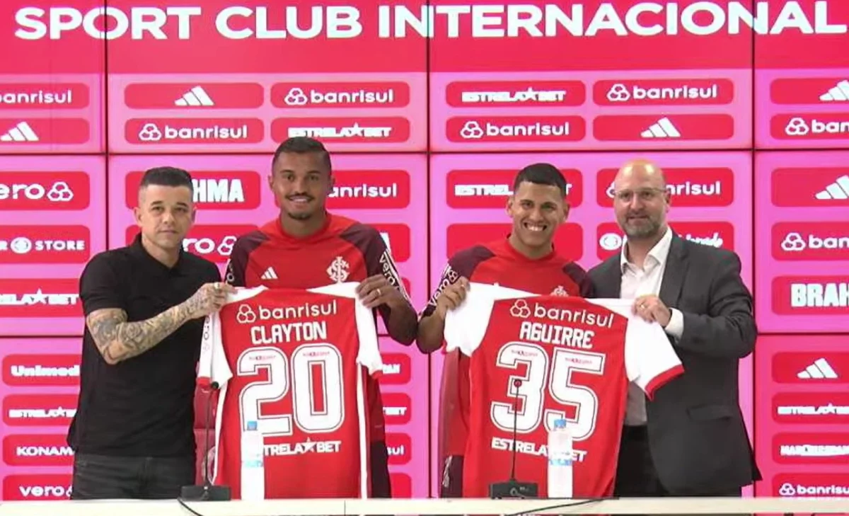 Ao lado dos dirigentes José Olavo Bisol e Andrés D’Alessandro, os novos reforços do Inter, Braian Aguirre e Clayton Sampaio, foram apresentados oficialmente nesta terça-feira e deram coletiva de imprensa enfatizando a alegria pela chegada ao Beira-Rio. Ambos, inclusive, já se colocaram à disposição do técnico Roger Machado visando as respectivas estreias.