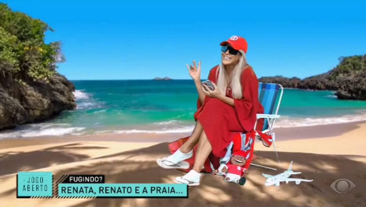 Tantas vezes ironizada por Renato Portaluppi após títulos do Grêmio ou vitórias em Gre-Nais, Renata Fan deu o troco depois do triunfo do Inter por 3×2 no domingo, no Beira-Rio, pelo segundo turno do Brasileirão. No “Jogo Aberto”, da TV Bandeirantes, ela simulou uma praia no estúdio e brincou que estava recebendo uma ligação telefônica do próprio Renato.