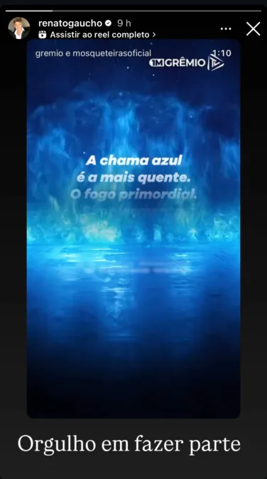 “Há 122 anos, surgia a primeira fagulha de uma chama que segue brilhando até hoje. Um fogo Imortal que se espalhou por todo o mundo. O azul ardente, que representa a combustão perfeita, aquece os corações Tricolores de geração em geração. Hoje, celebramos aquilo que nos trouxe até aqui. Olhamos para a nossa história com orgulho e vislumbramos juntos um futuro de glórias”, diz mensagem do perfil oficial do Grêmio nas redes.
