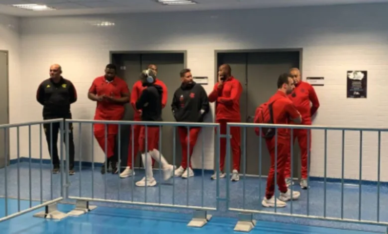 Discussão entre Marcos Braz e fotógrafo na zona mista. Seguranças do Flamengo teriam empurrado cinegrafista que gravava imagens da chegada da delegação. Houve uma discussão entre o profissional e o dirigente na zona mista da Arena.