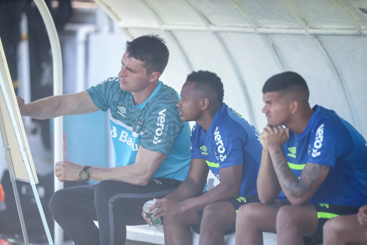 TG: A gente trabalha o lado mental, que envolve concentração, tomada de decisão, extracampo, criando ferramentas dentro dos treinamentos para desenvolver um atleta mais concentrado, competitivo e intenso dentro do jogador. Eu tenho uma grande comissão técnica que me ajuda na relação entre treinador e jogador. Aí a gente trabalha a questão do extracampo, porque são muitas tentações que acontecem na vida de um jovem. Ainda mais para o jovem que joga no Grêmio, numa instituição que tem torcida, que ele começa a ter relação com imprensa. Então o trabalho multidisciplinar com a minha comissão técnica, que é de excelência, faz com que a gente consiga ter o jogador mais concentrado para as boas decisões dentro do dia a dia de treinamento. É um trabalho de dia a dia. Com muita conversa, com muita orientação, de bastidor. Para estarmos sempre orientando, como um psicólogo. E temos psicólogas excelentes no clube que nos ajudam e também trabalham com isso. Então é um trabalho muito de formiguinha, de dia a dia, que você tem construindo para desenvolver o extracampo, o mental e o lado mental de dentro de campo.