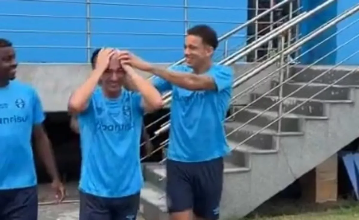Ainda não utilizado pelo técnico Gustavo Quinteros, mas já integrado ao elenco principal, Pedro Gabriel passou pelo “batismo” junto aos colegas nesta semana e teve as suas longas tranças no cabelo cortadas, ficando careca. “Pô, os caras viajaram no meu cabelo, hein? Que isso… mas pra cima”, brincou o jogador.