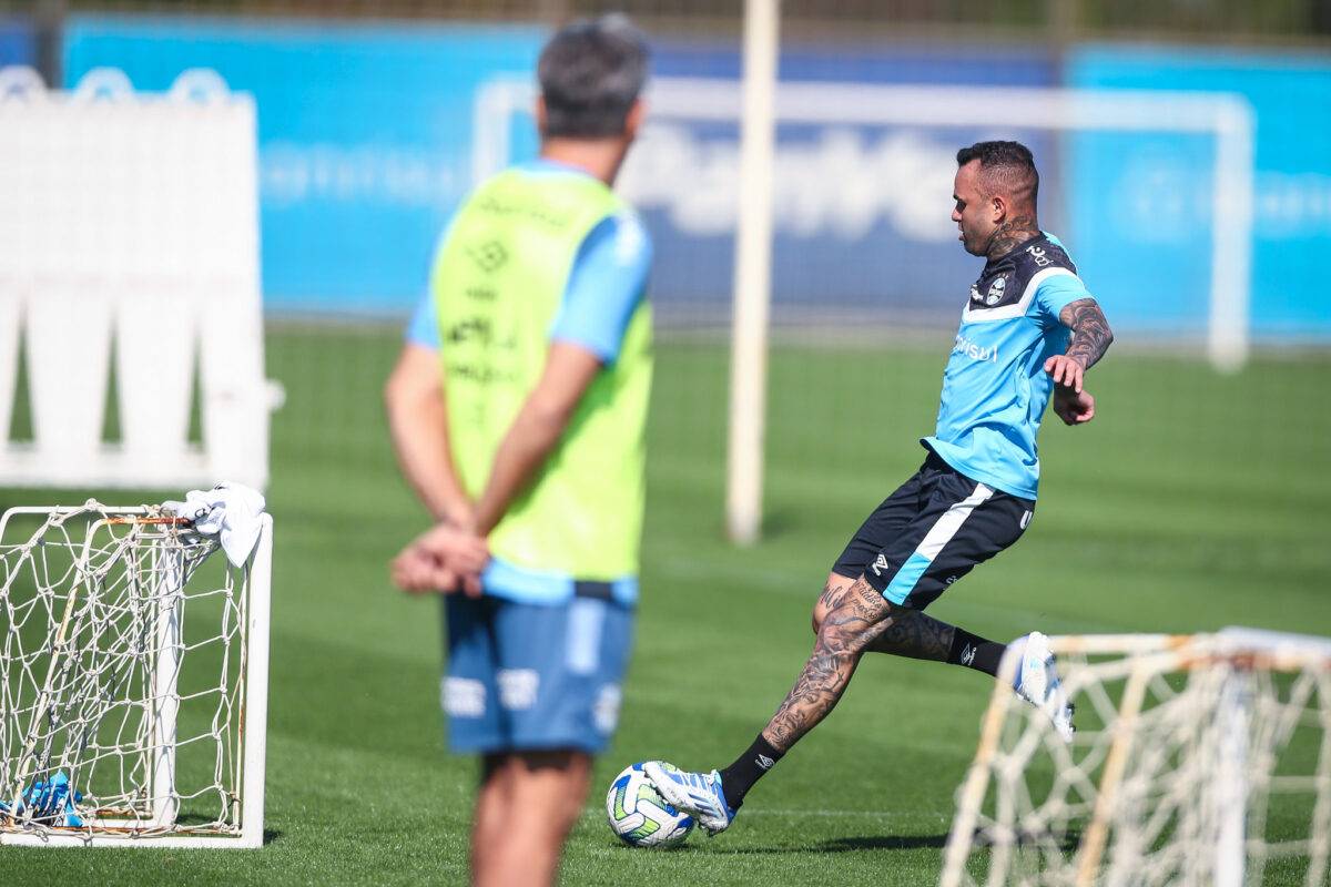 Nas redes sociais, o Grêmio divulgou imagens de mais um treinamento técnico no CT Luiz Carvalho com a participação de Luan. Em um dos vídeos divulgados no Twitter oficial, o Rei da América de 2017 aparece fazendo um gol com “passe” de Renato: