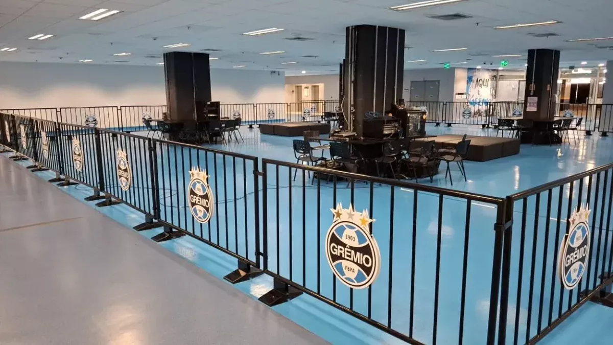 “Foi realizado o retrofit dos gradis que estruturam a área da zona mista da Arena do Grêmio, contemplando processos de jateamento, pintura e aplicação do escudo do clube. O projeto integra a diretriz de aprimoramento contínuo das instalações, com foco em elevar o padrão de qualidade e fortalecer a presença da marca em todos os pontos de contato do estádio”, informou a assessoria de imprensa do Grêmio.